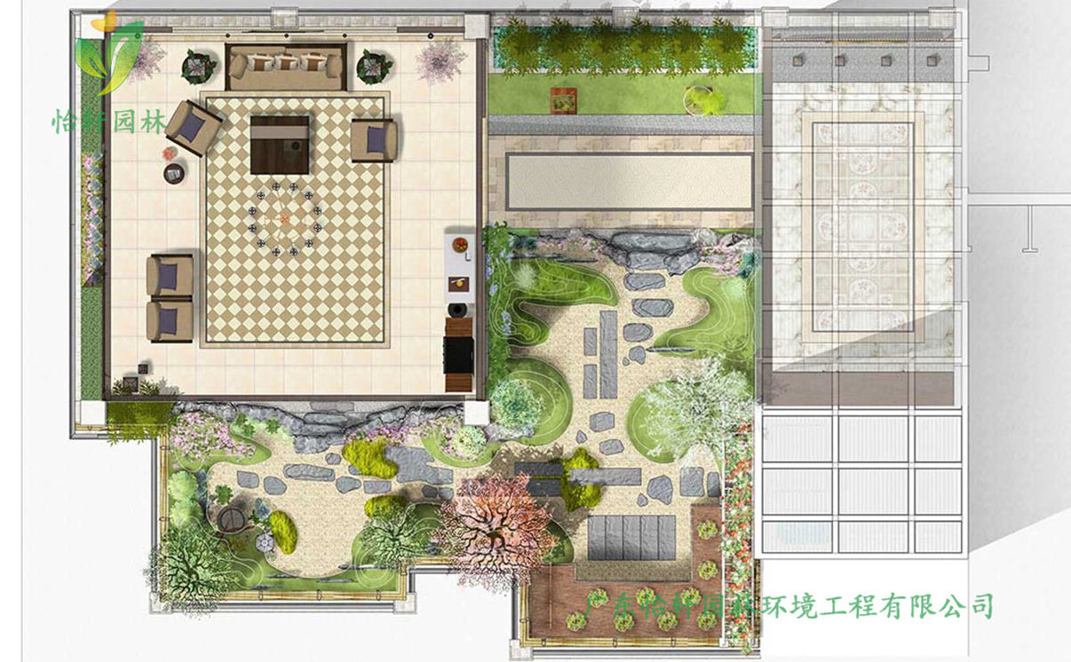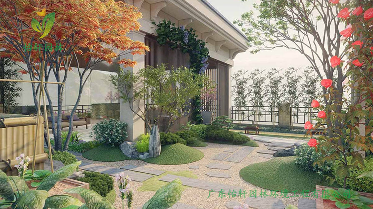 广东怡轩园林绿化公司别墅花园景观设计案例介绍: