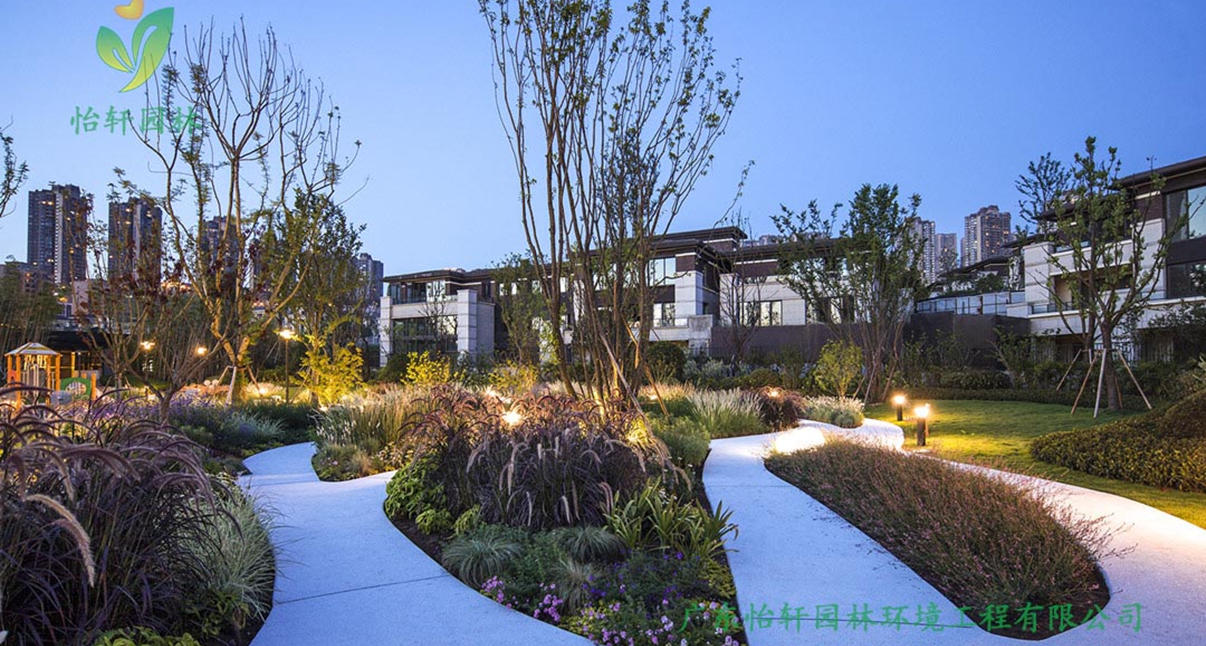 怡轩园林绿化公司旨在建设一个以自然生态为基础,满足使用需求的综合社区景观绿化,同时与别墅居住区分隔开,别墅绿化景观设计的全新尝试。花月为观花赏月儿童活动多功能景观带,林月沿湖大草坪广场加白色浪漫的铁艺廊架求婚或者办婚礼的好场所,湖月有沿湖小道也沿湖别墅的主景观面,湖水与边景的自然衔接。充分体现人与自然、人与人的和谐共生,营造出心中的理想家园。遥望湖面廊桥,迎接每一位到访的客人。从案名与自然中提取元素,湖、山、林、月。意向出几何形态。月-也为圆满之一,有山有湖有林居住风水的圆满,终极置业人生境遇的圆满,三代居四代居生活状态的圆满。造景常寄托艳丽花朵,从而忽视草的模样,当草作为景观中的主角,它所展现出不可思议的唯美景色。