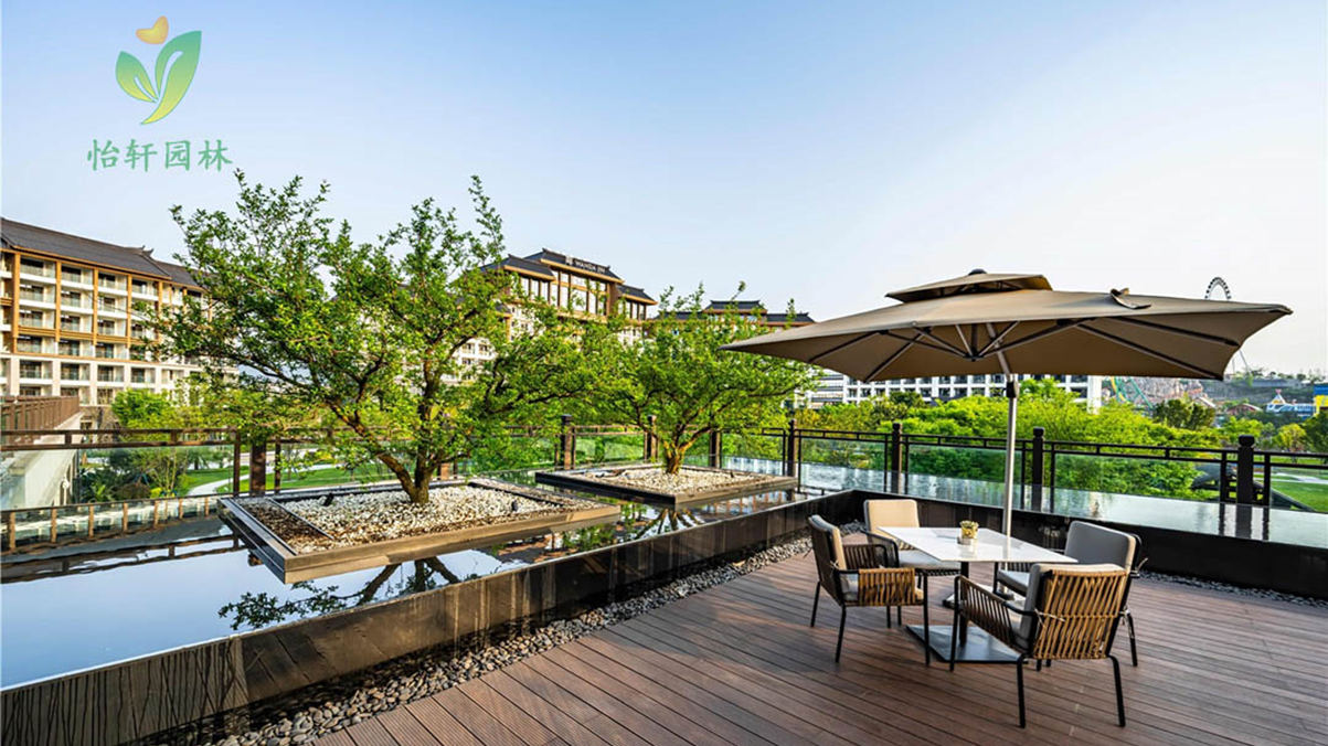 怡轩园林绿化公司将现代生活与自然融合,利用文化、植物、材料、色彩、灯光等要素体现景观质感,营造意境之美,表达酒店文化主题,传递一种由景观绿化带来的人文惬意之感,为前来度假的人群提供浪漫优雅的度假居住环境。