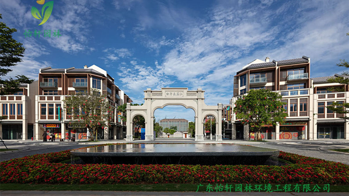 广东怡轩园林绿化公司通过“村头一棵树”点景榕树、雨树树阵、文化牌楼等景观元素,铺陈文化中轴的景观序列,营造南洋美丽汇核心精神轴线。南洋古街上的特色酒店在建筑元素上沿用了海南传统老宅——陈家宅、符家宅、韩家宅、林家宅的部分元素,复刻其精华,这是对前辈的致敬,也是文化的再生。文化融汇中西,应承了南洋文化荟萃致辞,南北内街一脉相承,又进行传统和现代的呼应,简约时尚的建筑主基调,商业外墙挂着形制考究的南洋风情招牌,地面上设置的文化地雕及特色花砖,街头巷尾的情景雕塑及景观装置,就像是把历史上有关南洋的美好凝固成了画片,缕缕南洋情怀浮上心头……灯火通明的街道,来来往往的人群,展示一幅安居乐业的生活画面。扬帆广场以南洋船和灯塔为主景,营造扬帆起航的意境。